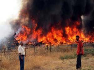 Mardin'in Nusaybin ilçesine bağlı Durakbaşı köyü ile Suriye sınırları içerisinde bulunan Türkiye Devlet Demir Yolu'na ait rayların yenilenmesi için yol kenarına bırakılan tahta kalaslar bugün öğlen saat 14.00 sıralarında henüz bilinmeyen bir nedenden dolayı alev aldı. Sınıra yakın Durakbaşı köyünde yaşayan vatandaşlar alevlerin köye sıçramasından dolayı korku dolu anlar yaşadı. Çıkan yangında bazı köylüler evinin bahçesindeki ağaçları korumak için ince ev hortumuyla alevlere su döktüler.