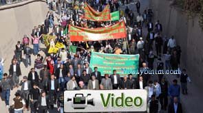 Demokratik Toplum Kongresi (DTK) Eşbaşkanları Ahmet Türk, Aysel Tuğluk ile DTK Meclisi Mardin’in Nusaybin ilçesinde halka seslendi. Şirin Bulvarı önünde bekleyen kitleye karışan Türk ve Tuğluk, yaklaşık 2 Km. Yolu kitleyle birlikte yürüyerek esnafı selamladı.