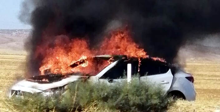 Nusaybin - Cizre Karayolunda kaza yaptıktan sonra alev alan otomobildeki 3 kişi yaralandı.
