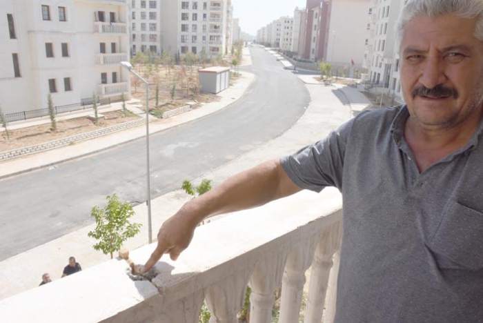 Fırat Mahallesi Aslan Sokak 21. Blokta oturan Ekrem Akın, konutlara yerleştikten sonra yaklaşık 45 gündür balkona konulan beton korkuluklarla uğraştığını söyledi. Evinde oturduğu ilk günden buyana balkondaki beton korkuluğun çatlak olduğunu ve sallandığını bildiren Akın, hemen her gün Kentsel Dönüşüm Ofisine gittiğini ancak bir çare bulamadığını kaydetti.